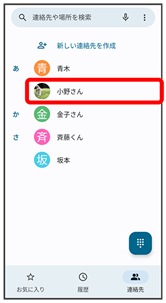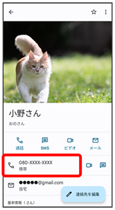 • 通話履歴画面で対象の通話履歴の名前/電話番号をタップ
