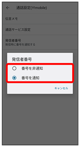 発信者番号通知 お客様の電話番号を相手に通知したり、通知しないようにしたりできます。