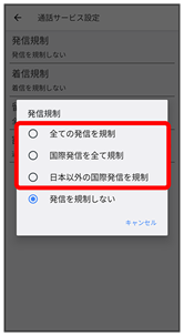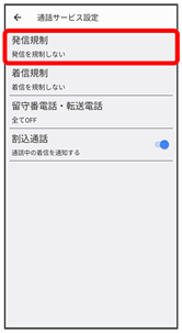 • 発信規制を無効にするときは、発信を規制しないをタップします。