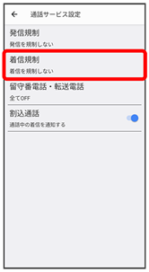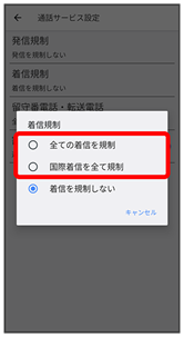 • 着信規制をすべて無効にするときは、着信を規制しないをタップします。