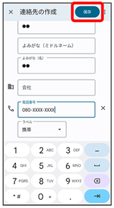 - ダイヤルキーをタップして、登録したい電話番号を入力