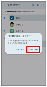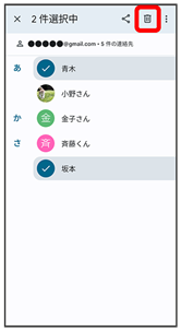 - 複数の連絡先を削除する場合は、対象の連絡先をロングタッチ(