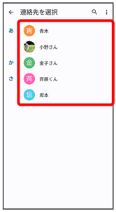 | 連絡先を選択したり、連絡先の表示を変更することができます。 | ||