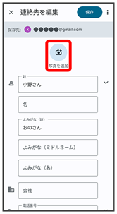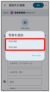 - すでに連絡先に画像を設定している場合は、写真を撮影が新しい写真を撮る、写真を選択が新しい写真を選択と表示されます。