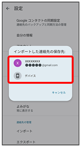 インポートした連絡先の保存先をタップ