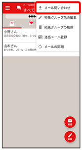 - メール送受信画面で、宛先グループ(相手)名をタップ