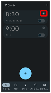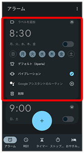 - 削除をタップすると、アラームを削除できます。