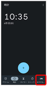 アラームや世界時計、タイマー、ストップウォッチ、おやすみ時間を利用できます。