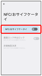表示)にすると、画面ロック中にNFC/おサイフケータイ®機能がロックされます。画面ロックを解除している間、NFC/おサイフケータイ®機能を利用できます。