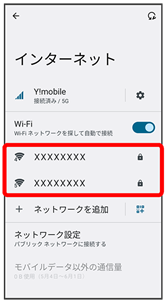 - インターネット画面で、「接続済み」と表示されているWi-Fi ネットワークをタップ