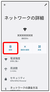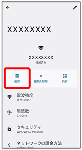 - Wi-Fi ネットワークとの接続を削除すると、再接続のときにパスワードの入力が必要になる場合があります。