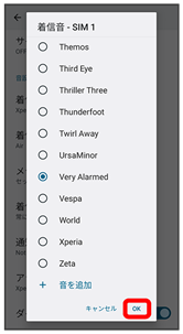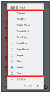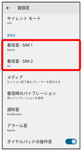 | 着信音 - SIM 1 | SIM 1の着信音を設定します。 | |
