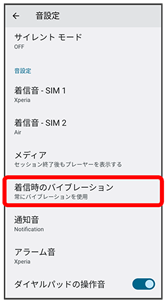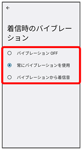 - バイブレーション OFF/常にバイブレーションを使用/バイブレーションから着信音