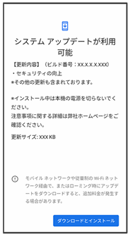 通知パネルに表示されるソフトウェア更新の通知をタップし、画面の指示に従って操作してください。