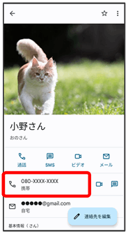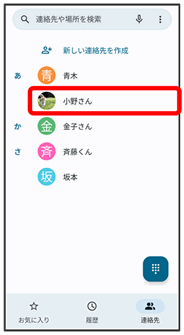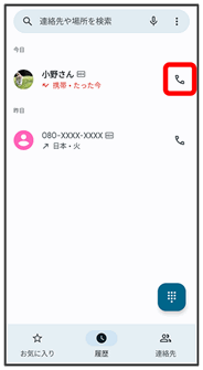 通話履歴画面で対象の通話履歴の名前/電話番号をタップ