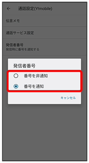 | 発信者番号通知 | お客様の電話番号を相手に通知したり、通知しないようにしたりできます。 | |
