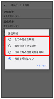 | 発信規制・着信規制 | 電話発着信を状況に合わせて制限できます。 |