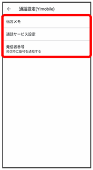 通話設定(Y!mobile)画面が表示されます。
