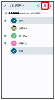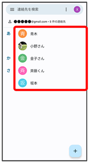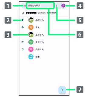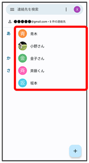 | 連絡先を選択したり、連絡先の表示を変更することができます。 | ||