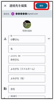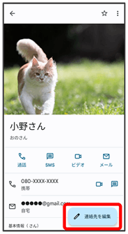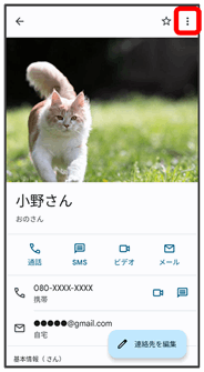 | タップすると、連絡先詳細画面が表示されます。 | ||