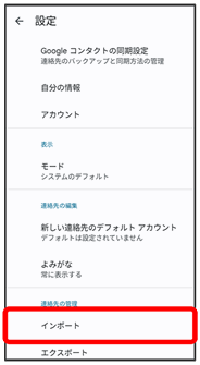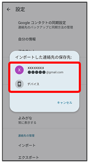 インポートした連絡先の保存先をタップ