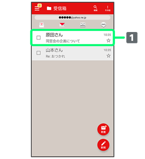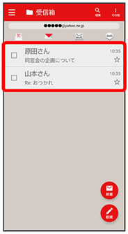 受信箱画面で下にドラッグ/フリックしても新着メールの確認ができます。