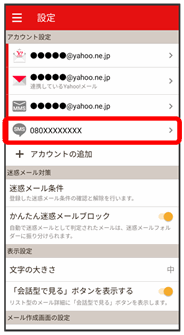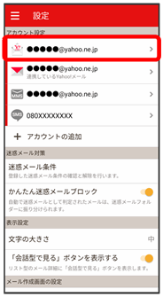 | アカウントの別表示 | Y!mobile メールと連携しているYahoo!メールを個別に表示させるかどうかを設定します。 |