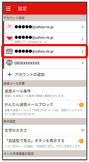 | アカウントの追加 | メールアカウントの追加ができます。 | |