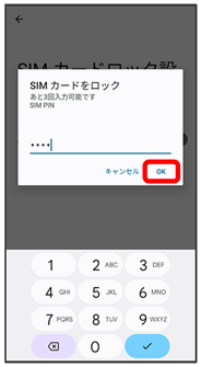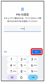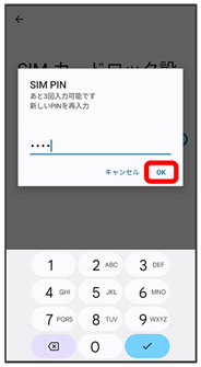 PINコードを有効にすることで、SIMカードを本機に取り付けた状態/eSIMが有効な状態で電源を入れたとき、PINコードを入力する画面を表示するように設定できます。