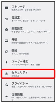 画面のロックや暗証番号など、セキュリティに関する設定ができます。