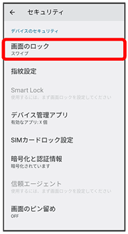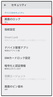 | 画面のロック | 画面ロックの解除方法を設定します。 | |