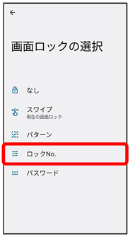 | ロックNo. | 画面ロックを解除するための暗証番号です。 詳しくは、「ロックNo.で画面ロックを解除するように設定する」を参照してください。 |