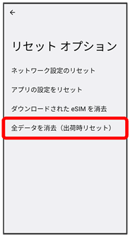 | リセット オプション | 設定のリセットや、データの初期化を行うことができます。 | |