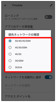 その他、必要に応じて通信方式、ローミングの設定を変更してください。