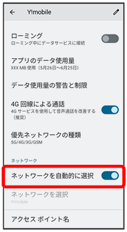 ローミングの設定が変更されます。