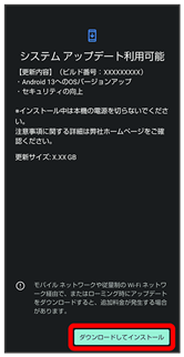 Android 12から Android 13へのバージョンアップ手順を説明します。バージョンアップには、通信料はかかりません。