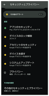 | アプリのセキュリティ | 項目が追加され、「セキュリティ」のGoogle Play プロテクトが移動されます。 | |