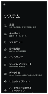 | リセットオプション | Wi-Fi、モバイル、Bluetooth をリセットが、モバイル ネットワークの設定をリセットする/Bluetooth と Wi-Fi のリセットに変更されます。 そのほかの項目が一部変更されます。 |