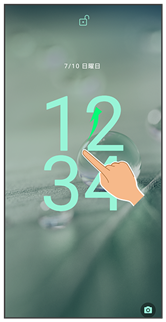 が表示されている場合に画面を上にフリックしたときは、このあとパターン/ロックNo.(PIN)/パスワードを入力してロックを解除する操作が必要です。