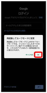 - セーフモード中は、機内モードに設定されます。セーフモードを解除しても、機内モードの設定が維持されますのでご注意ください。