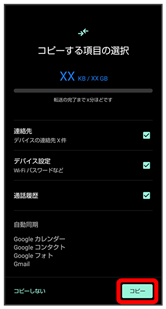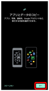 - ほかの端末などからデータをコピーしないときは、コピーしないをタップします。
