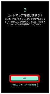 - 初期設定を中断し、あとでリマインダーを受け取るときは、中断し、リマインダーを受け取るをタップします。