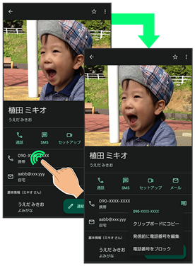 - 画面をロングタッチすると、利用できる設定や項目が表示される画面もあります。