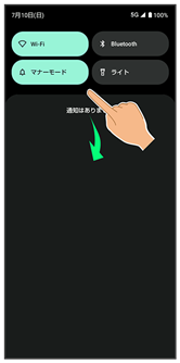 - 通知パネルが開いてない状態で、ステータスバーを2本の指で下にフリックしても、クイック設定パネルが表示されます。