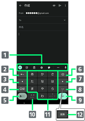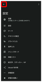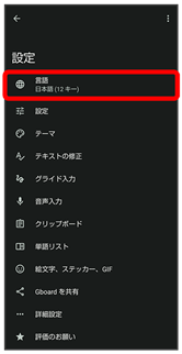 | 言語 | キーボードを切り替えることができます。 詳しくは、「キーボードを切り替える(Gboard)」を参照してください。 |