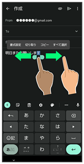 をドラッグすると、貼り付ける位置を調節できます。- ツールバーに切り取り/コピーした文字が表示されているときは、表示された文字をタップしても、貼り付けできます。