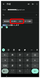 - 文字入力画面で入力済みの文字列をロングタッチ