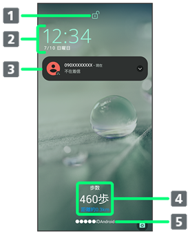 | 3 | ロック画面にテキストを追加を設定しているときに表示されます。詳しくは、「ディスプレイ設定」を参照してください。 |