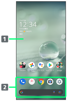 アプリのショートカットやフォルダを自由に配置できます。ホーム画面からすばやくアプリを起動したり、Google™ 検索バーを利用できます。
