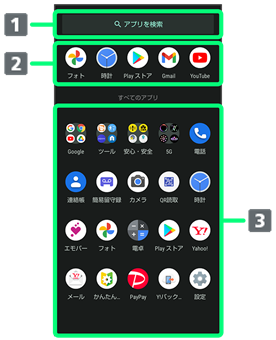 - ホーム画面とアプリ一覧画面